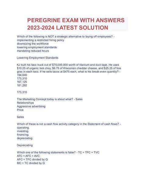 Read Online Peregrine Exam Answers mobipocket